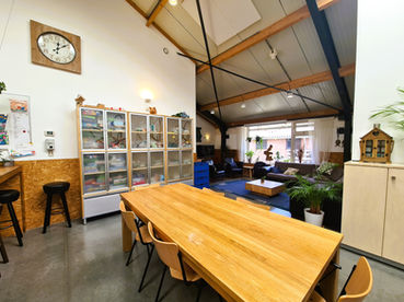Ruime faciliteiten: De Achterruimte is volledig uitgerust met moderne vergaderfaciliteiten, waaronder snelle wifi, een groot presentatiescherm, een flipover en comfortabele zitplaatsen.